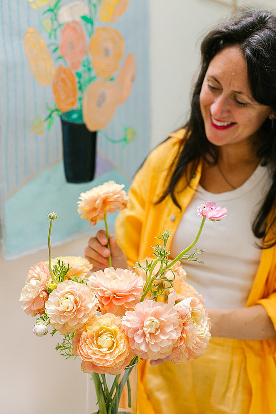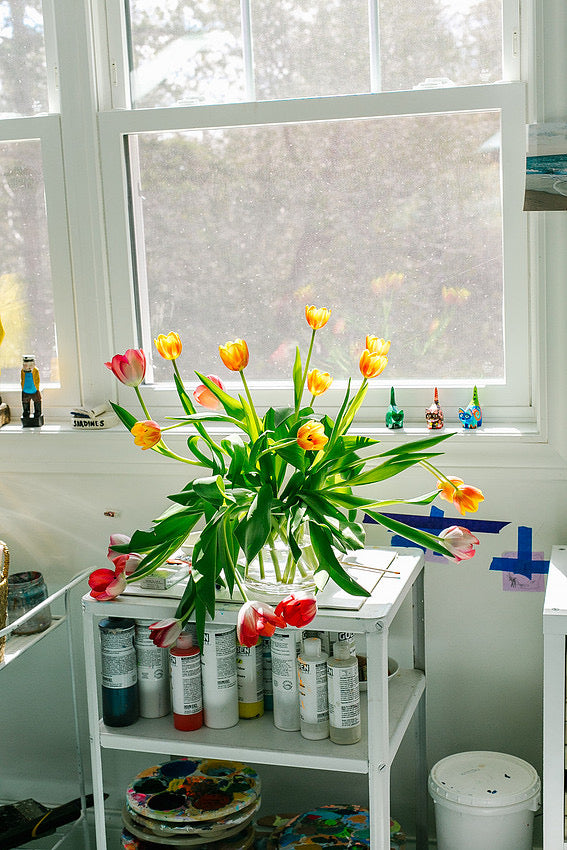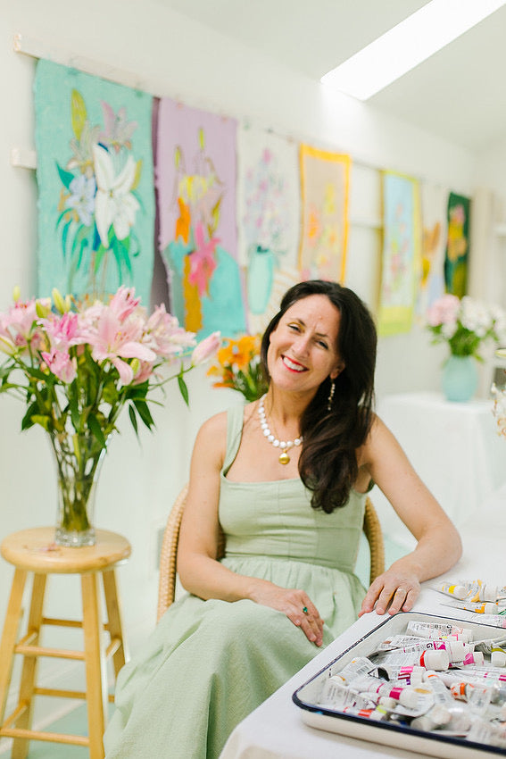 We will be painting flowers. We will work with the same materials Andrea uses to paint her original flower paintings, including: handmade Mulberry paper, gouache, acrylic paint, water soluble crayons, and oil pastels. All necessary supplies will be provided for each participant. If you’d like to bring your own vase, tablecloth, or supplies to use as inspiration to paint you are more than welcome!