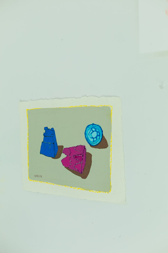 Original Acrylic, gouache, oil pastel, and Neo-color Carandache on beautiful hand-made cream paper.