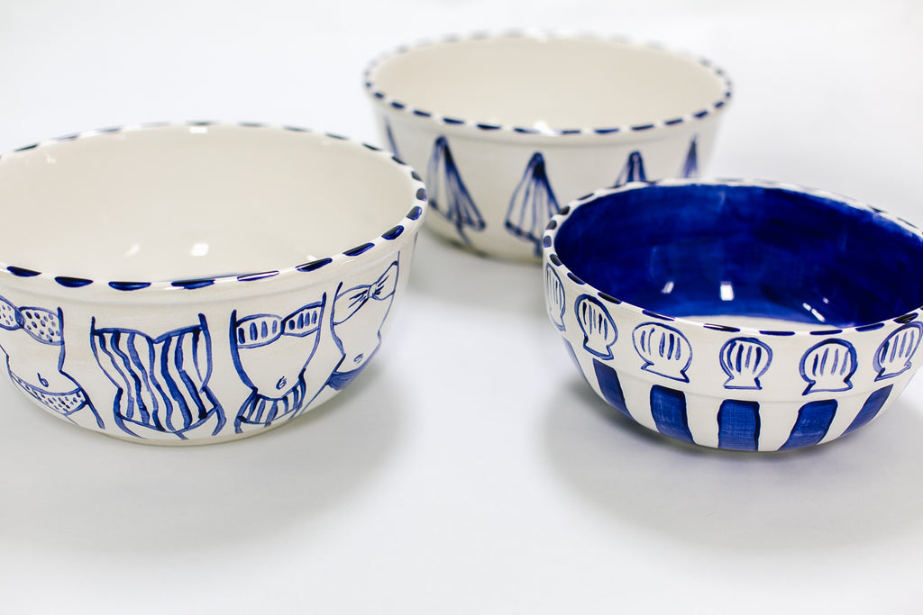 Inspired by the beloved land scape and details of the ocean, this one of a kind Hand-Painted Ceramic Bowl is sure to become one of your most beloved dishes you reach for. Whether you are using it for the Holidays every year with your family, for a dinner party, or everyday use at dinner each night, each piece from this collection of dinnerware was designed to be an heirloom for your home. A piece of artwork for your table.