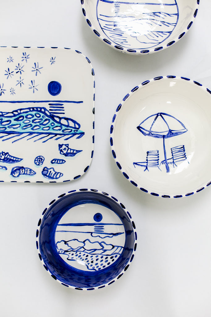 Inspired by the beloved land scape and details of the ocean, this one of a kind Hand-Painted Ceramic Bowl is sure to become one of your most beloved dishes you reach for. Whether you are using it for the Holidays every year with your family, for a dinner party, or everyday use at dinner each night, each piece from this collection of dinnerware was designed to be an heirloom for your home. A piece of artwork for your table.