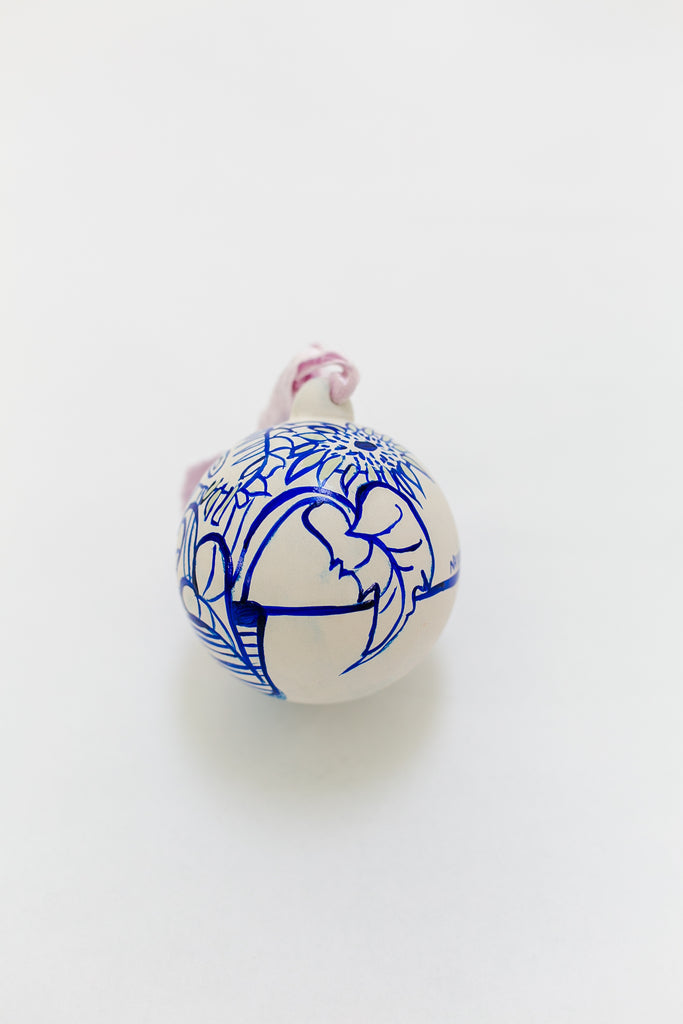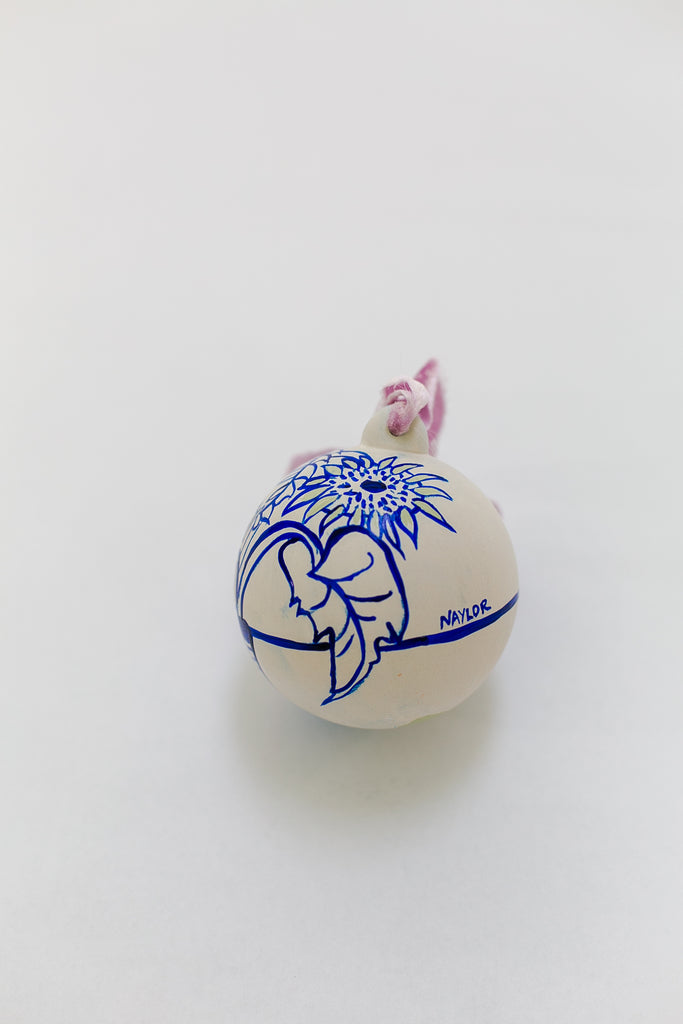This is from my 2025 Holiday Ornament Collection. Each one of a kind porcelain ornament is hand-painted by Andrea Naylor and measures 4 inches in diameter.