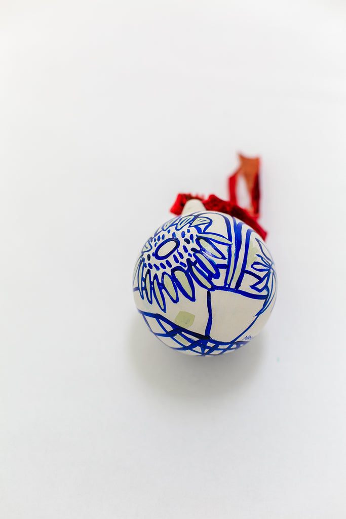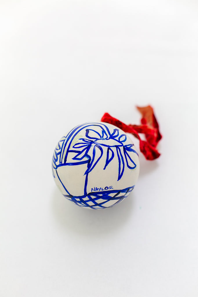This is from my 2025 Holiday Ornament Collection. Each one of a kind porcelain ornament is hand-painted by Andrea Naylor and measures 4 inches in diameter.