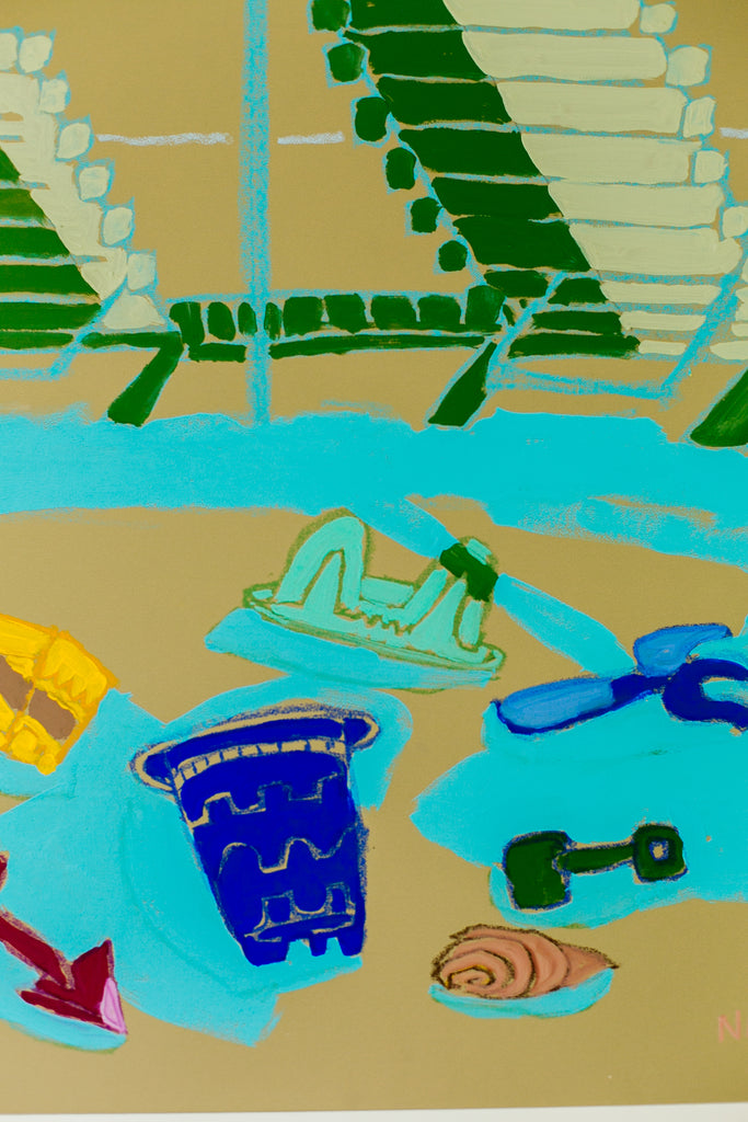 Original Heavy-bodied Acrylic, Gouache, and Oil Pastel on archival paper. This piece will come framed with a mat in a bleached wood frame. If you’d like a different frame, please contact our studio prior to purchasing.