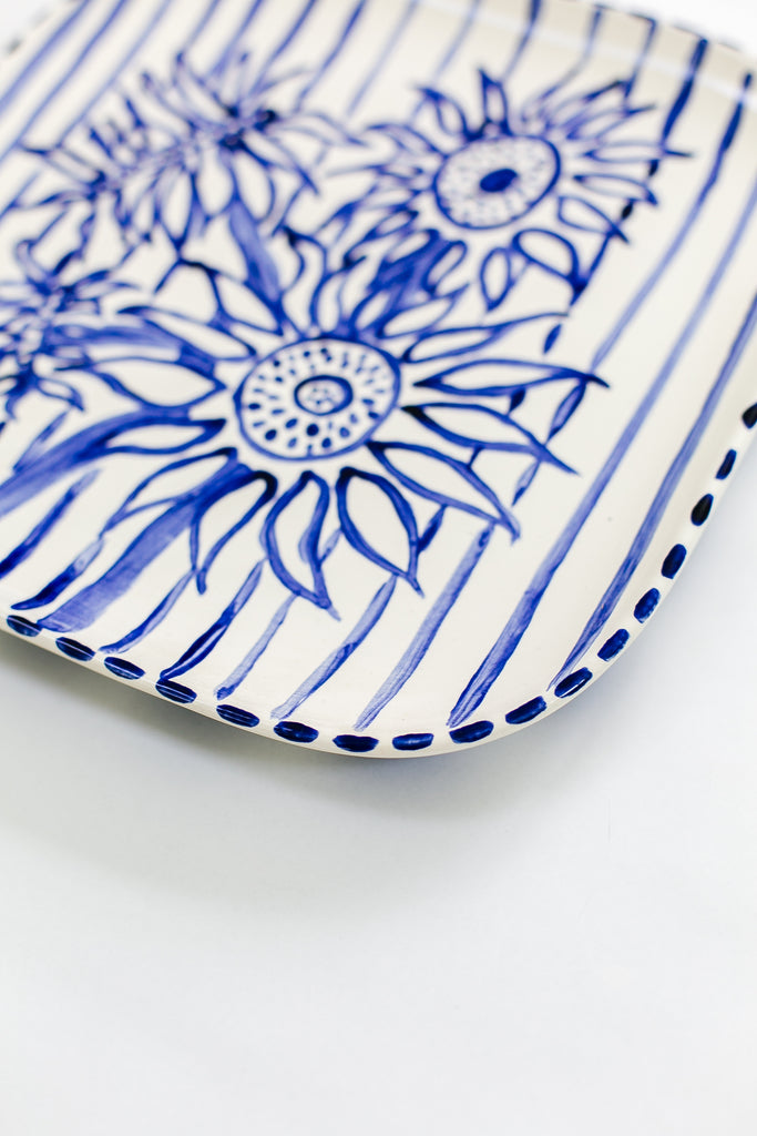 Inspired by the beloved shapes and personality of the sunflower, this one of a kind Hand-Painted Ceramic Platter is sure to become one of your most beloved dishes you reach for. Whether you are using it for the Holidays every year with your family, for a dinner party, or everyday use at dinner each night, each piece from this collection of dinnerware was designed to be an heirloom for your home. A piece of artwork for your table.