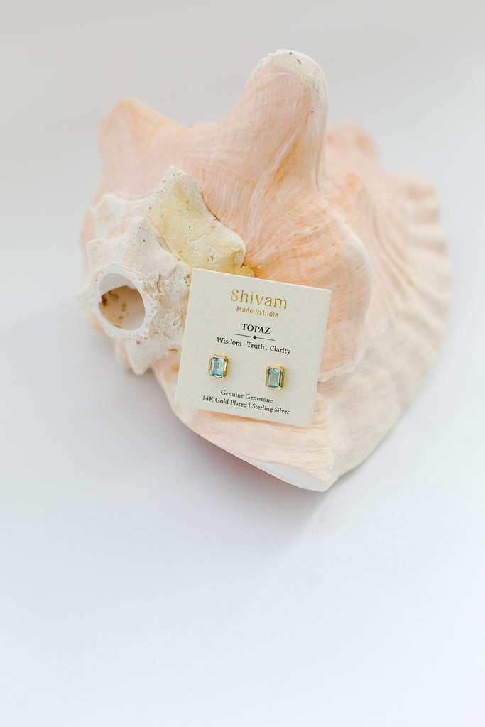 Sterling Silver + Gold Plated Genuine Gemstone earrings. The Topaz Stone represents wisdom, truth, and clarity.